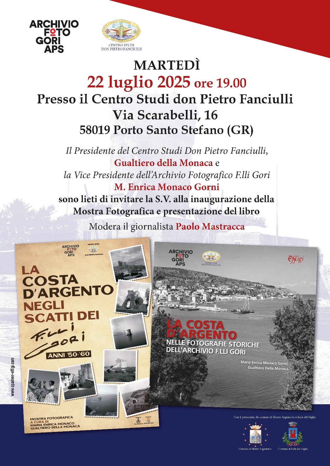 PROMOTORE: L’iniziativa è promossa dal Centro Studi Don Pietro Fanciulli e dall’Archivio Fotografico F.lli Gori APS, con il patrocinio dei Comuni di Monte Argentario e Isola del Giglio.